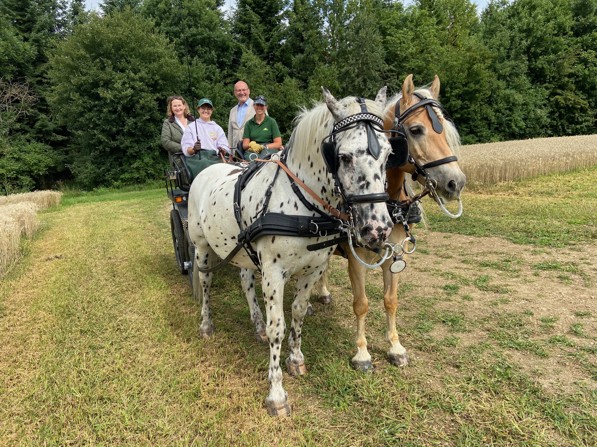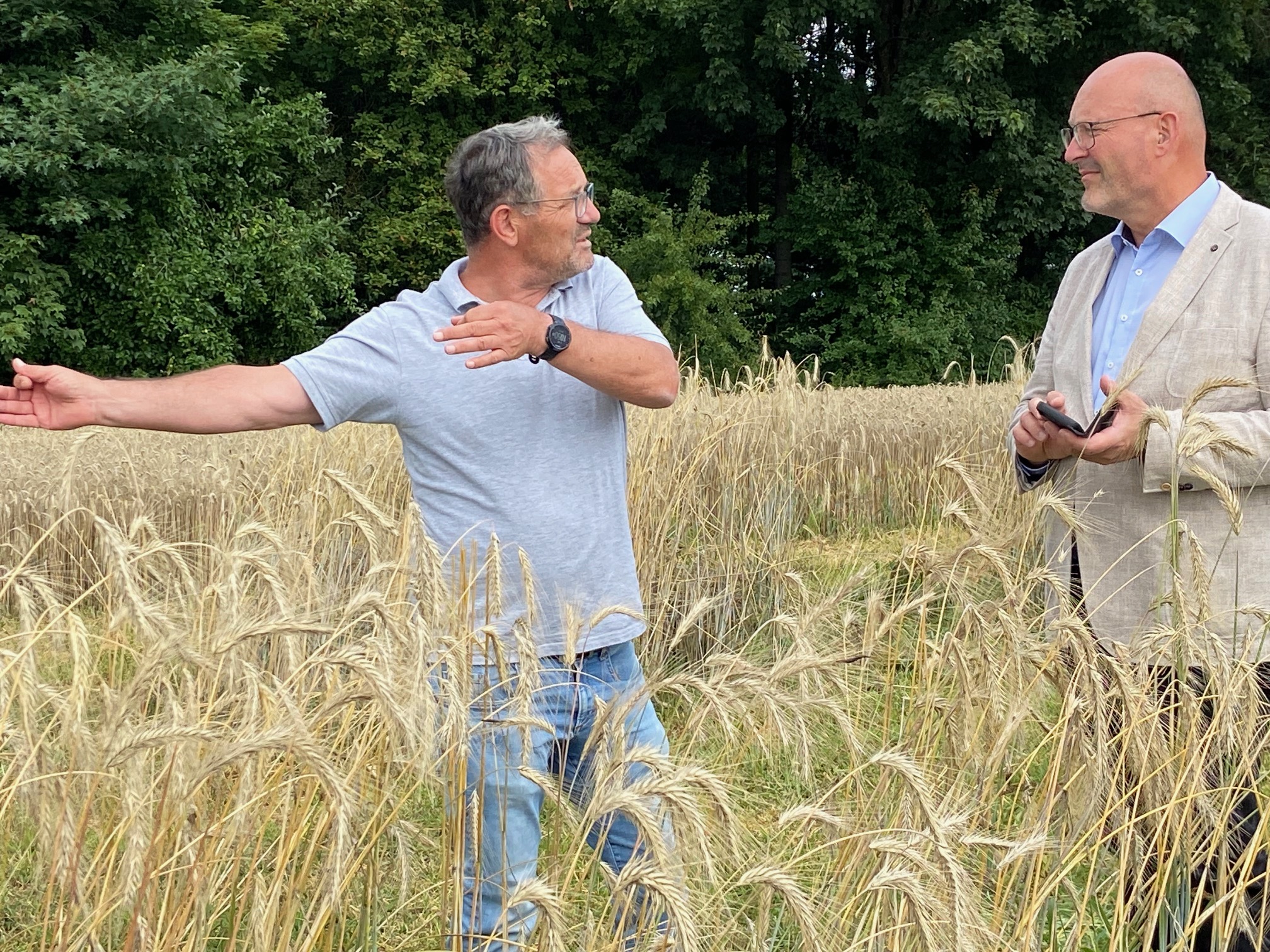 Landesgüterdirektor Erhard Kührer auf Besuch am Edelhofer Wirtschaftsbetrieb bio und konventionell – Saatzucht: gerne informieren wir über den Einsatz von technischen Neuerungen, Erfolgen in der Getreidezüchtung und in den Bio-Versuchen und in der Aquakultur.