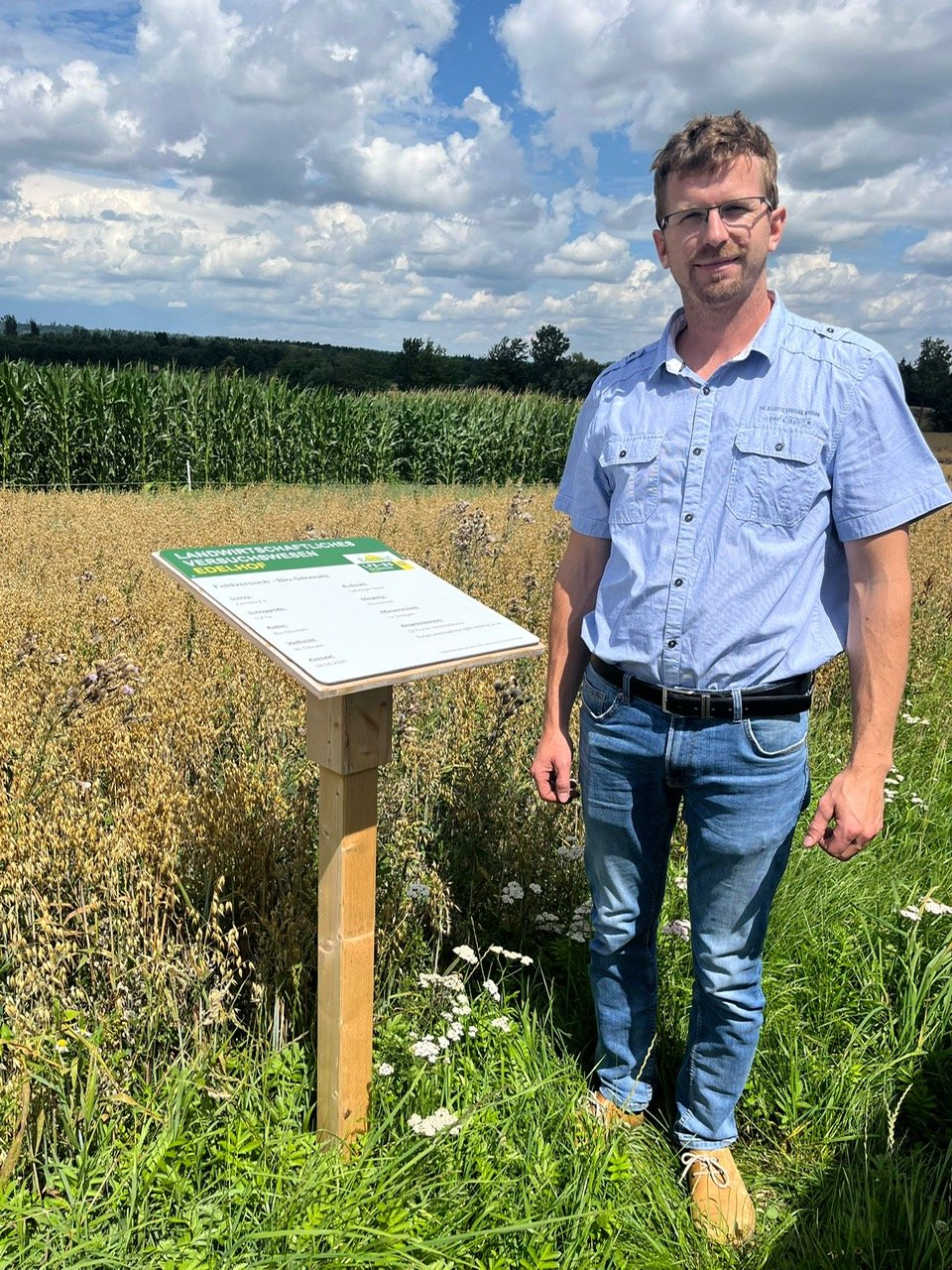 - Florian Weichselbaum stellt die neuen Feldtafeln zur Versuchsbeschreibung vor