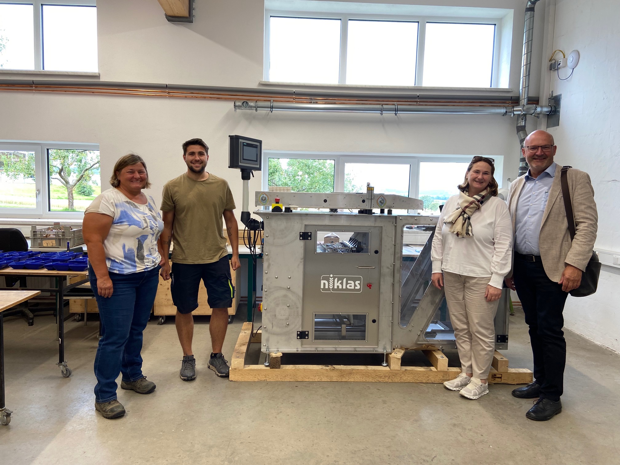 „Für uns als Versuchsbetrieb ist der neue sogenannte Magazinbeizer ein Meilenstein bei der Pflanzenzüchtung. Denn die Beizmittel können nun gleichmäßig und abriebfest auf der Saatgutoberfläche verteilt werden. Zudem ist die Anlage optimal für die Beizung kleiner, sortenreiner Saatgutproben von 25 bis 250 Körnern geeignet, wie wir sie häufig bei der Züchtung verwenden“, informiert Saatzucht-Betriebsleiter Andreas Jager. „Diese Kleinmengen kommen insbesondere in frühen Züchtungsgenerationen zum Einsatz und werden mittels Magazin-Sätechnik angebaut. Damit schaffen wir die Grundlage für gesundes Ausgangssaatgut, das hohe Qualität und maximale Sicherheit gewährleistet“, so Jager.